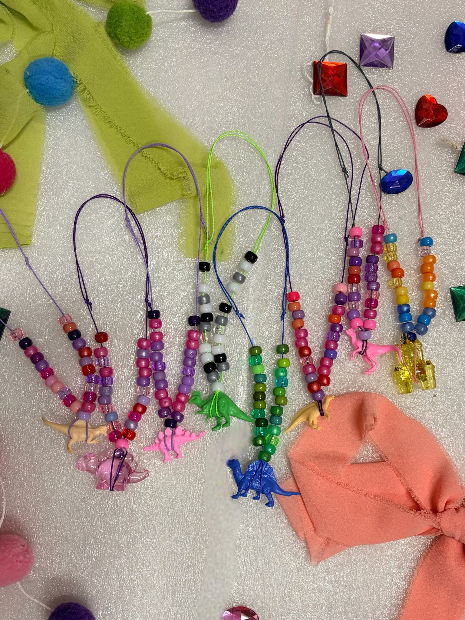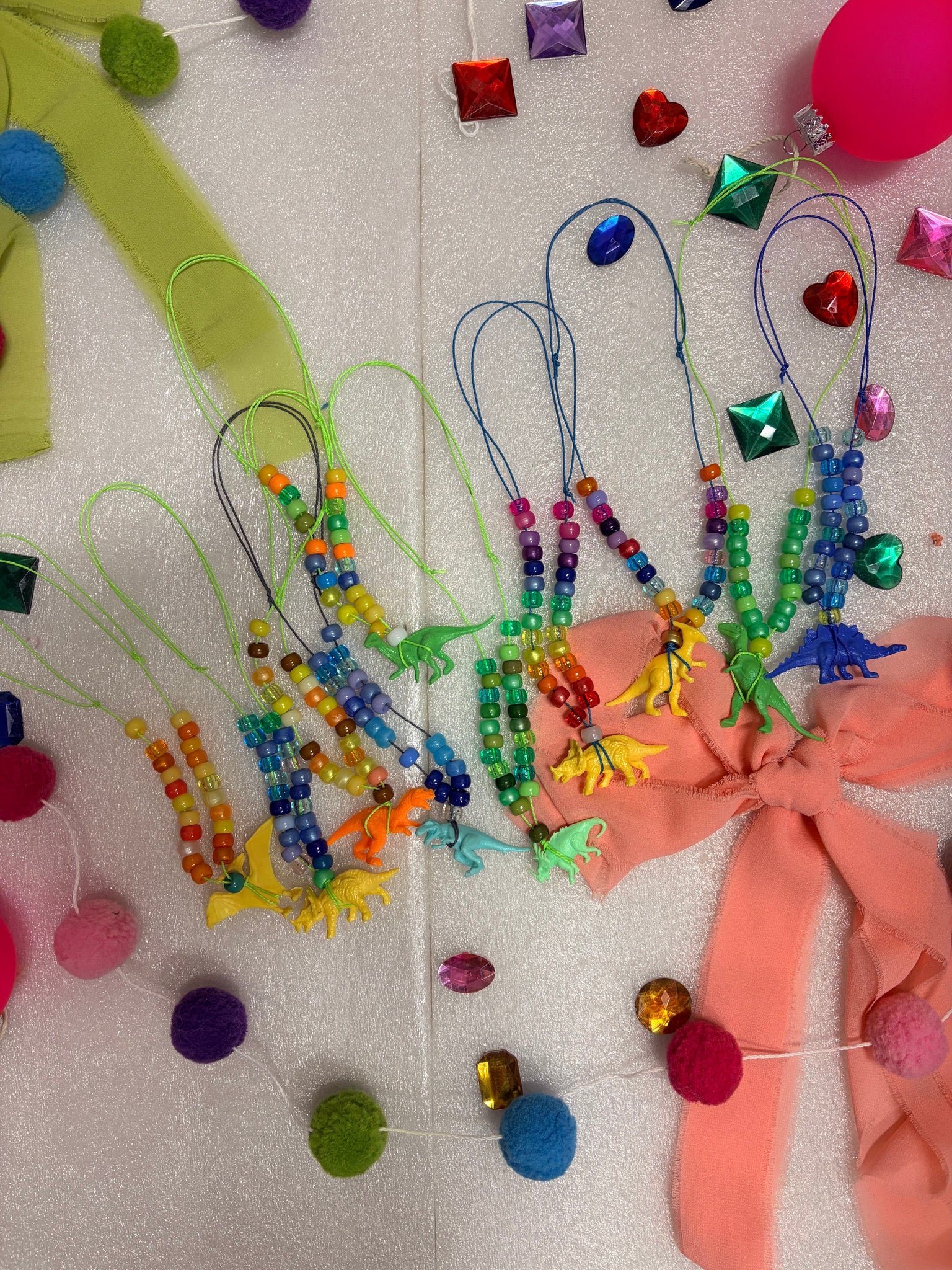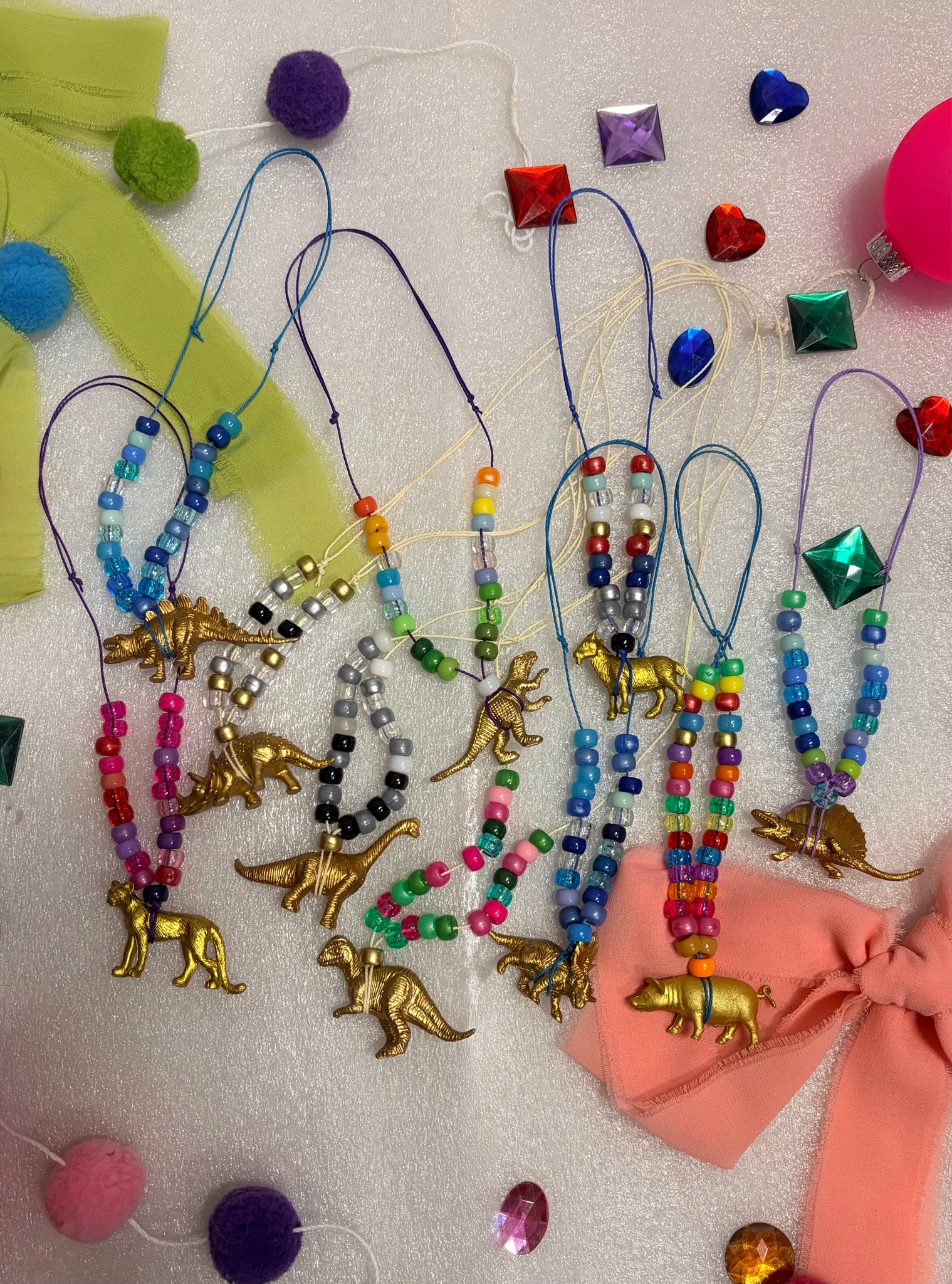 Evelyn is making necklaces to help pay for her camps this summer (dance camp and farm camp).